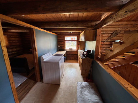 Experience the convenience of doing laundry with our full load washer and small load dryer. For those who enjoy a more traditional approach, feel free to hang your clothes on the clothesline, conveniently located just off the back deck. Enjoy fresh air and sunshine while your laundry dries naturally!